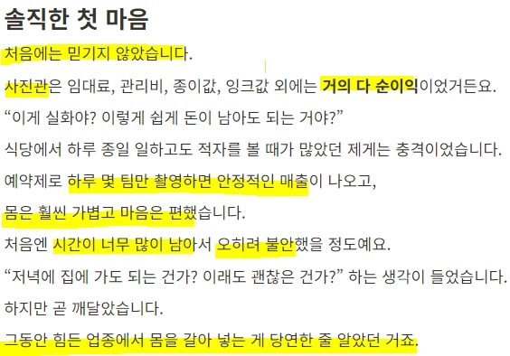 근데 사진관 사업이 돈이 정말 되냐구요?